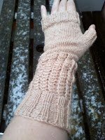 I think you will get the idea of this when I get a little bit further. It is the start of a mitten that I am working on for a swap. The design is mine...